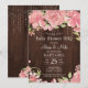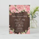 Rustic country style co-ed budget affordable baby shower backyard barbecue invitation on dark brown barn wood featuring big pink watercolor peony roses and strings of twinkle lights. +++++++++++++++ The invitation is suitable for outdoor garden backyard rustic country bbq baby girl shower parties.