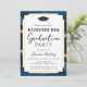 Celebrate your graduate’s big achievement with this stylish Backyard BBQ Graduation Party Invitation featuring an elegant gold and navy design with a graduation cap icon.