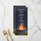 A blazing stone fire pit contrasts against a starry night sky on this menu card for a backyard bonfire or fire pit celebration. Use for a birthday party, BBQ, s'mores party, summer cocktail party, or other celebration, Memorial, or Labour Day event. Available with matching products.