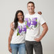 Original fine art design of a titmouse, chickadee and nuthatch in lilacs by artist Carolyn McFann of Two Purring Cats Studio printed on a quality shirt for nature lovers.