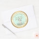 Central design features an illustration of a small backyard hive on an ivory and sky blue background. HONEY is written in a chiseled metallic gold font. Text is printed in gold. Personalise with your apiary name, address and honey description (raw, hand bottled, single source etc.). Also include your honey net weight. Common honey net weight conversions: 8oz (227g), 12oz (340g), 16oz (454g), 32oz (907g), 5lb (2.27kg).