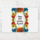 Elegant and colourful floral design for a backyard summer event. Features teal blue roses, white daisies, red wildflowers and sunflowers with gold geometric frame