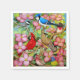 Add some original watercolor artwork in realism style to your party or picnic table with these colourful backyard wild birds in a pink Dogwood tree by artist and designer Carolyn McFann of Two Purring Cats Studio.