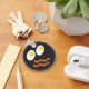Funny bacon and fried eggs in a frying making a silly face design. By Dooni Designs