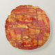 Bacon Background Pattern, Funny Fried Food Round Cushion