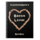 A funny bacon heart on black on a spiral bound notebook. Add your name or other text. Notebook pages do not contain recipes, add your own.