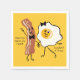 If you love breakfast, especially bacon and eggs, this design is for you! Featuring a funny retro style slice of bacon with a bow tie and sunny side up fried egg with a bow in her hair. They are smiling at each other and holding hands. Customisable message. PinkInkArt original!
