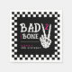 Celebrate your little girl's second trip around the sun with this Bad 2 the Bone 2nd birthday party napkin. Designed in classic black and white checkerboard, hot pink and a skeleton hand making a peace sign, this table setting is perfect for highlighting your wild ride through the terrible twos. Personalize it with your event details for a party that will be two good to be true!