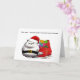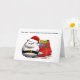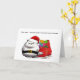 Silly Christmas card featuring a cat with a bad attitude, wearing a Santa hat and standing in the front of a sack of gifts. Inside messaging currently reads: "I don't do coal, but I did you leave you a little something in the litter box." Easily update all text.