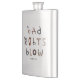 The product is a good size and came exactly as it was pictured. The lid is not attached to the flask, which could be dangerous on drunken nights... The print came out surprisingly well and looks very sharp. Would definitely recommend.