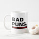 Deliver daily dad jokes with this Bad Puns funny coffee mug! Featuring a hilarious slogan and humorous quote, this mug is the perfect gift for pun lovers and joke enthusiasts. Made from high-quality ceramic, it's ideal for coffee, tea, or office humor. Great for birthdays, White Elephant gifts, or just brightening someone's morning. Dishwasher and microwave safe for easy use. Give the gift of groans and giggles with this durable, conversation-starting mug that makes every sip funnier.