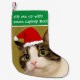 Badass cats with attitude slogans. "Hit me up with some catnip Bro" text on funny, quirky cat's Christmas stocking.