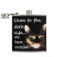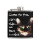 Badass cats with attitude slogans. "Come to the dark side...we have cookies" internet meme on hip flask.