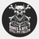 Badass Skeleton Bulldog Gothic Skull Classic Round Sticker