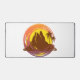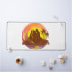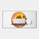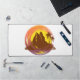 Badge with tropical volcano scenery and palm trees desk mat