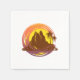 Silhouette styled landscape emblem with tropical beach palm trees and volcano island