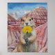This art print features a watercolor portrait of a cute Prairie Dog munching on a dandelion in Badlands National Park.