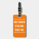 This was purchased as part of a 40th Birthday present for my nephew who is going to Vegas. It is made of high quality, very study and we decided only to put his name on the back of the tag, but you can add a full address if you so wish.