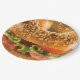 A bagel, also spelled beigel, is a bread product originating in the Jewish communities of Poland. It is traditionally shaped by hand into the form of a ring from yeasted wheat dough, roughly hand-sized, that is first boiled for a short time in water and then baked. The result is a dense, chewy, doughy interior with a browned and sometimes crisp exterior. Bagels are often topped with seeds baked on the outer crust, with the traditional ones being poppy, sunflower or sesame seeds. Some may have salt sprinkled on their surface, and there are different dough types, such as whole-grain or rye.