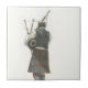 Decorative tile featuring a watercolor painting of a bagpiper in full kilt walking down a beach. Artwork: Watercolor and graphite on pencil. Copyright Dominic A. White. All rights reserved.