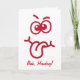 This funny Christmas Card features a funny face, cross-eyed with tongue out, and a "Bah, Humbug!" greeting on the front of the card and "Whatever" on the inside. Both greetings can be customized, so you can add your own funny caption. Red design on a white xmas card.