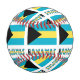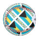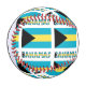 The blue, yellow, and black Bahaman flag with the word BAHAMAS, below in the colours of the flag. Design is tiled for best aesthetic. A white area of squiggly squares holds a spot for your name for a personalised touch. If you need a customised gift, just add someone else's name. Tiled flag fills the entire baseball.