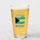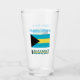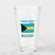 Personalised drinking glass shows the Bahaman Flag and the word BAHAMAS underneath. Above, add your name, in blue letters, for a personalised touch or gift. Design on glass shows on front and back. Great housewarming gift. Fun at family reunions, travel groups, and clubs. Mum and Dad might appreciate it on Mother's Day or Father's Day.