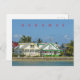 A beautiful view of colourful houses in the town of Spanish Wells in the Bahamas printed on a postcard.