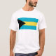 The flag of the Bahamas features a black equilateral triangle on the left representing the unity and determination of the people of the Bahamas. The triangle is orientated towards three equal-width stripes symbolising areas of natural resource; two aquamarine stripes at the top and bottom of the flag representing the sea and one gold stripe representing the land. The flag was adopted on July 10, 1973.