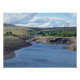 This photograph captures the striking and dramatic landscape of Baitings Reservoir in West Yorkshire, England. The image highlights the low water level, revealing the textured, cracked earth of the reservoir bed, and the stark contrast between the deep blue water and the exposed land. In the background, the iconic Booth Wood Bridge spans the water, while a series of pylons march across the rolling green hills, adding a touch of man-made structure to the natural, sweeping moorland. This piece is a powerful reminder of nature's fluctuating state and a perfect fit for anyone who appreciates landscape photography, the Yorkshire countryside, or a touch of environmental commentary. This image can be edited and transferred to multiple products of your choosing.