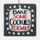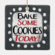 "Bake Some Cookies Today" is a cute text design in grey with black and red text. It sits on a white accent shape and cute white polka dots surrounding it.