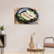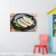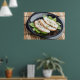 Baked slices of chicken meat on a black plate poster