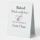 I ordered a number of items from Zazzle and all of them are wonderful. This table tent sign is more durable and professional than I expected. It’s not just a heavy cardboard tent. It has the feel and weight of durable plastic and will make a wonderful keepsake for the new mom! I highly recommend this product. .