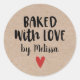 Personalise this large 3 inch baked with love sticker with your name. Perfect for that finishing touch to your homemade gifts from the kitchen. Designed for you by Blackberry Boulevard