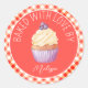 Baked With Love Cupcakes Red Plaid Personalised Classic Round Sticker