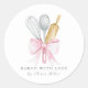 Baked With Love Elegant Pink Bow Personalised Classic Round Sticker Matching items avaiable