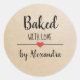 Baked with love kraft script name classic round st sticker