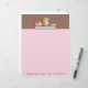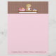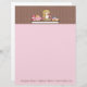 Business letterhead for baker or bakery. Design features girl baking cupcakes on chocolate and pink dotted background. Easy to customise and comes with your choice of paper and finishes.
