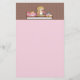 Business note paper for baker or bakery. Design features girl baking cupcakes on chocolate and pink dotted background. Easy to customise and comes with your choice of paper and finishes. Matching pieces available.