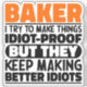 Funny Baker Sayings "Baker I Try To Make Things Idiot Proof But They Keep Making Better Idiots". Grab this Funny Baker design as a funny gifts for an awesome mum, dad or friend.