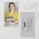 This business card features a professional photo layout with a baker, dessert caterer. Replace this placeholder photo with your own photo. The reverse side features the contact info, and social media. You can customise the text size, font, to fit your own personal style. Replace this sample place holder photo with your own portrait orientation business card. Here is a tip: when you customise your card.