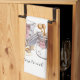 A personalised whimsical hand sketched glass sugar jar, flour, egg, and measuring spoons, illustration for a baker's kitchen towel. Time to cook. A great gift for a the creative cook in your family!