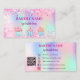 A pink, purple, mint green holographic background. Decorated with blush pink confetti and cupcakes. Personalise and add your name and text on front.