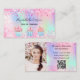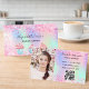 A pink, purple, mint green holographic background. Decorated with blush pink confetti and cupcakes. Personalize and add your name and text on front.