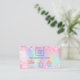 A pink, purple, mint green holographic background. Decorated with blush pink faux glitter dust and cupcakes. Personalise and add business logo and text on front.