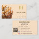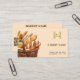 A soft peach coloured background. Decorated with a basket with bread and croissants. Personalise and add your business logo and the name, adress on front.