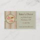 Various pastries on shabby striped background in sage green and taupe with polka dot ribbon accent. A wonderful design for cake decorators or bakeries. Matching stationery available.