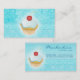 Turquoise blue elegant trendy business card with cute cupcake great for any coffee shop or bakery or caterer or event planner.