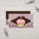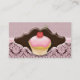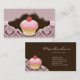 Chocolate brown and pink elegant trendy business card with cute cupcake great for any coffee shop or bakery or caterer or event planner.
