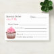 Large bakery themed Post it Note pad with graphics of a pink iced cupcake. Personalise the custom text to suit your business needs. Great for stone and mortar bakery or home bakers.